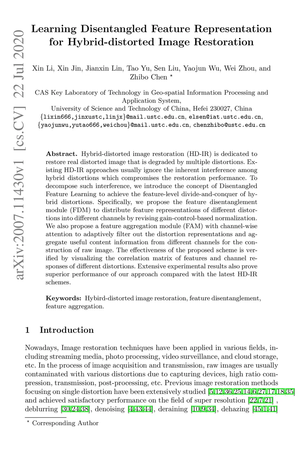 Learning Disentangled Feature Representation for Hybrid-distorted Image