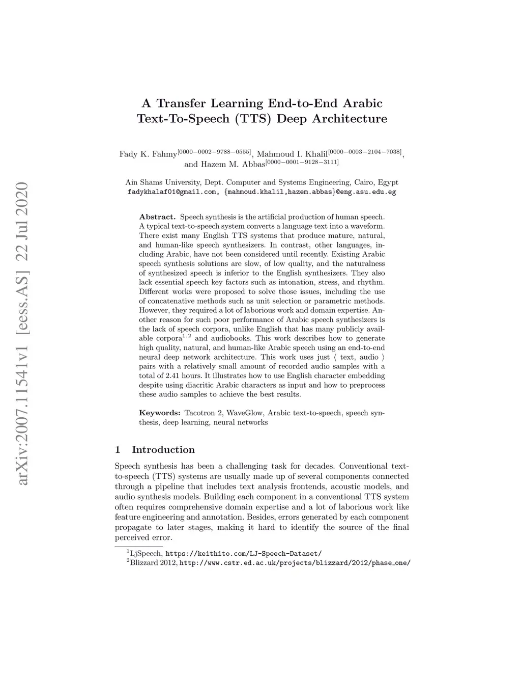 A Transfer Learning End-to-End ArabicText-To-Speech (TTS) Deep