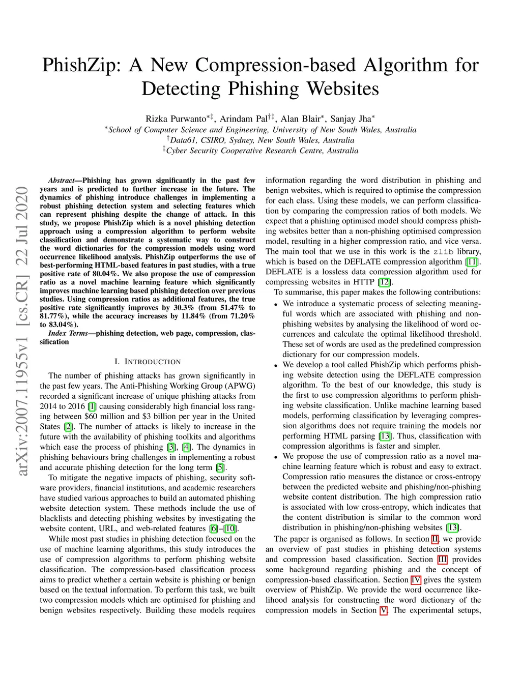 PhishZip: A New Compression-based Algorithm for Detecting Phishing