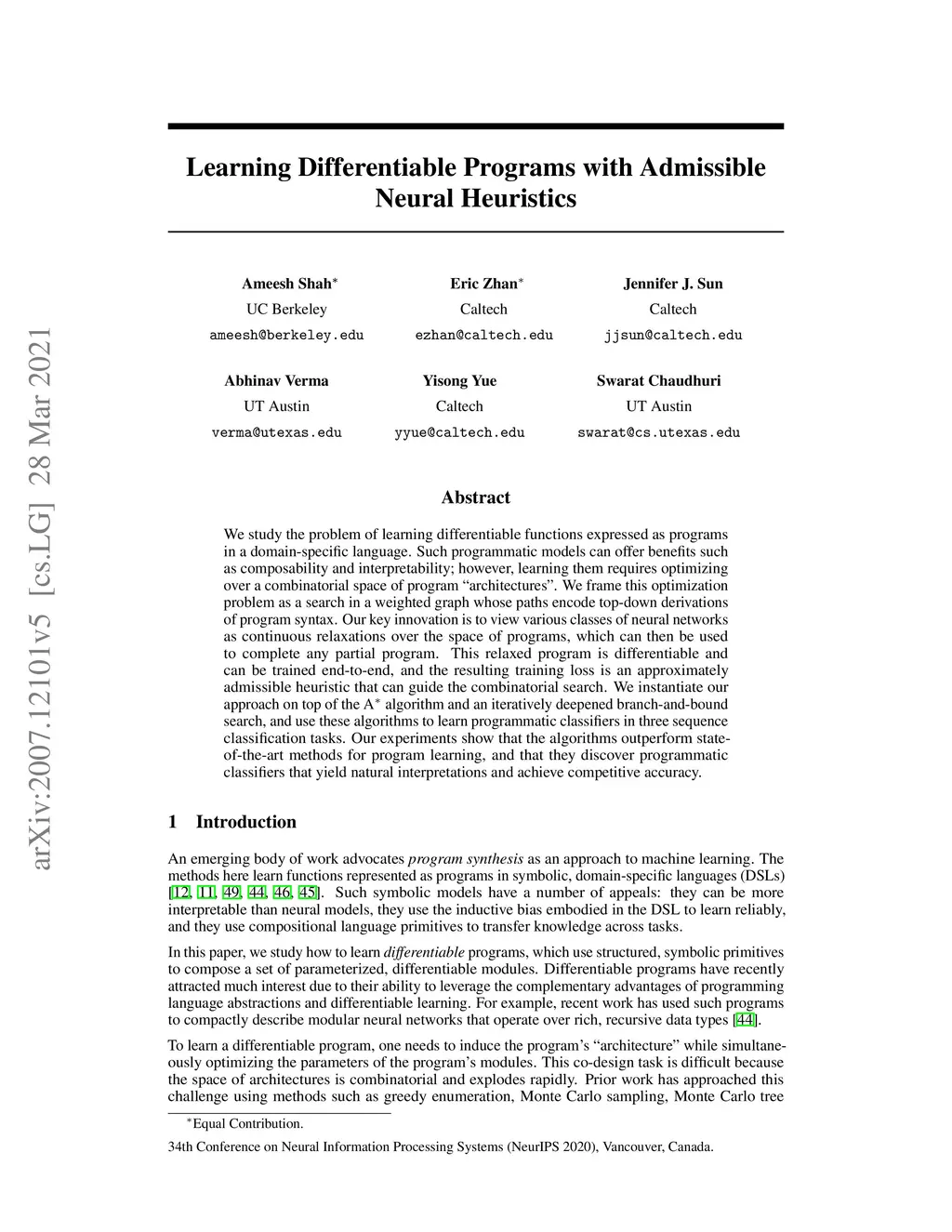 Learning Differentiable Programs with Admissible Neural Heuristics
