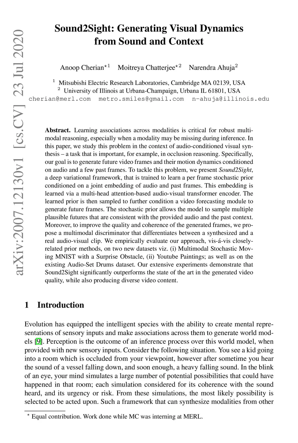 Sound2Sight: Generating Visual Dynamics from Sound and Context