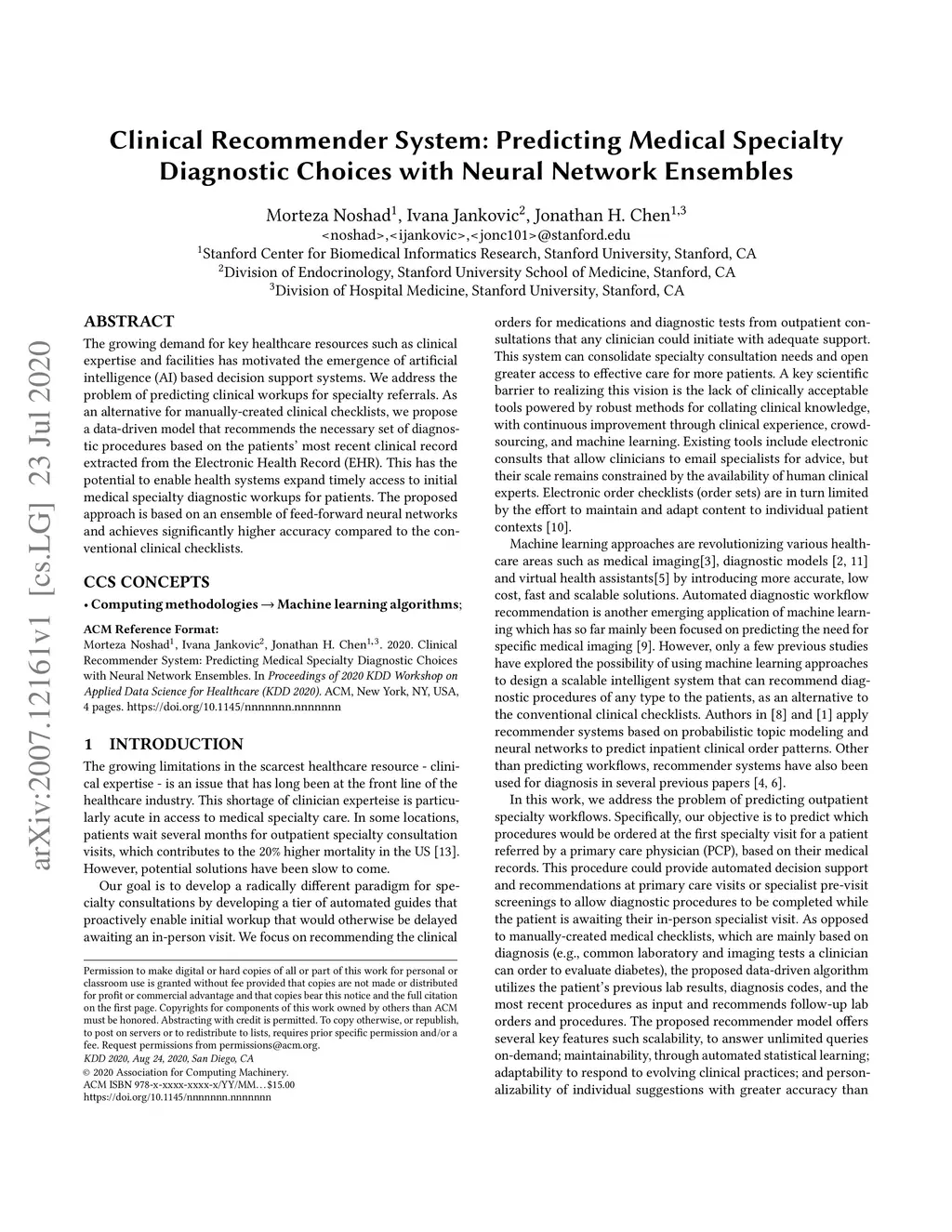 Clinical Recommender System: Predicting Medical Specialty Diagnostic