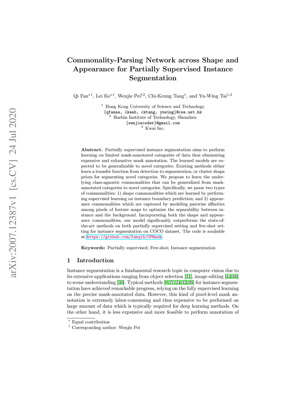 Commonality-Parsing Network across Shape and Appearance for Partially