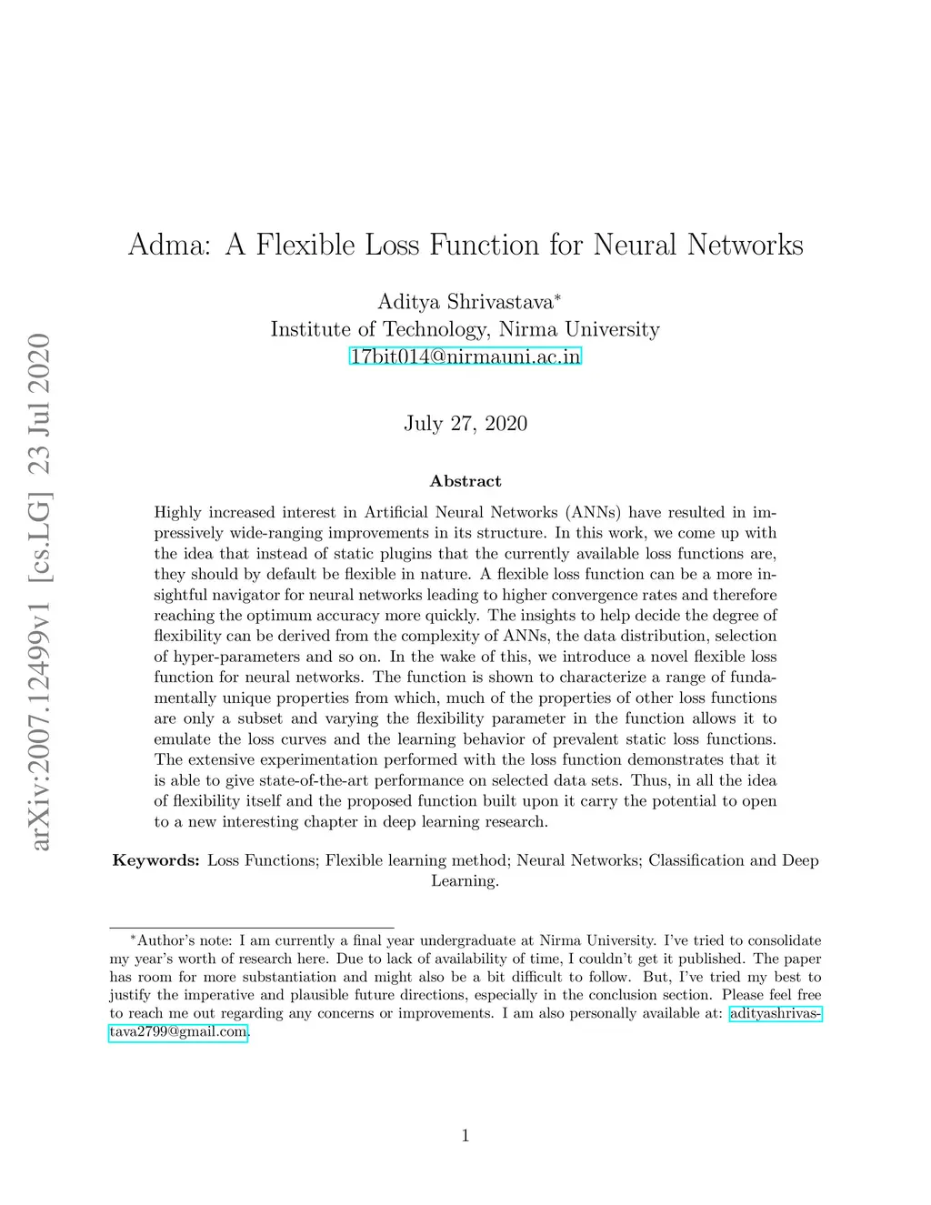 Adma: A Flexible Loss Function for Neural Networks