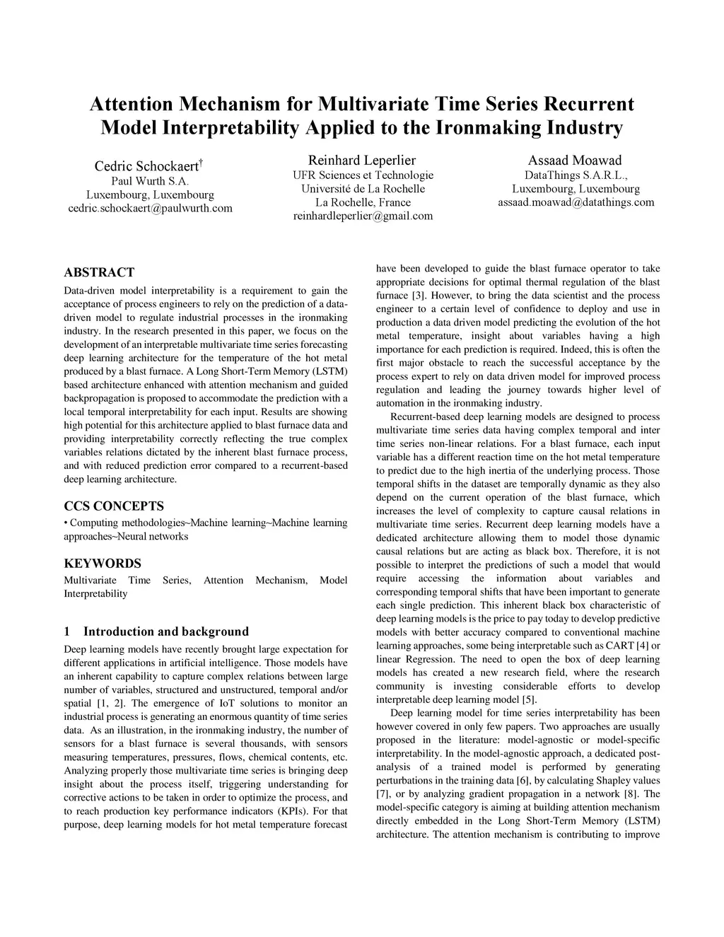 Data-driven model interpretability is a requirement to gain the acceptance of process engineers to rely on the prediction of a data-driven model to regulate industrial processes in the ironmaking industry. In the research presented in this paper, we focus on the development of an interpretable multivariate time series forecasting deep learning architecture for the temperature of the hot metal produced by a blast furnace. A Long Short-Term Memory (LSTM) based architecture enhanced with attention mechanism and guided backpropagation is proposed to accommodate the prediction with a local temporal interpretability for each input. Results are showing high potential for this architecture applied to blast furnace data and providing interpretability correctly reflecting the true complex variables relations dictated by the inherent blast furnace process, and with reduced prediction error compared to a recurrent-based deep learning architecture.