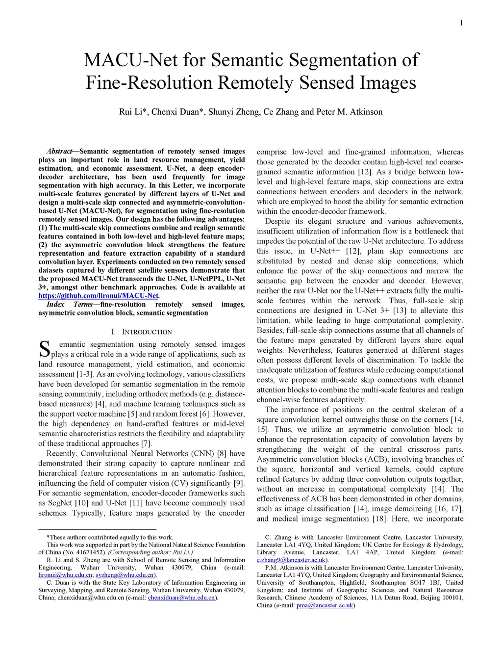 MACU-Net for Semantic Segmentation of Fine-Resolution Remotely Sensed