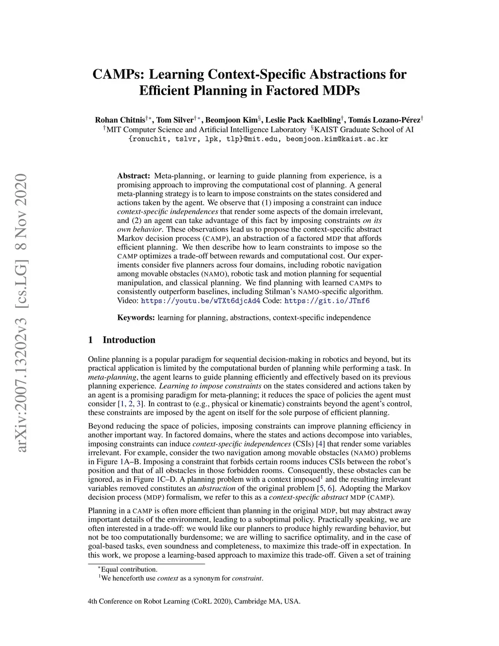 CAMPs: Learning Context-Specific Abstractions for Efficient Planning in