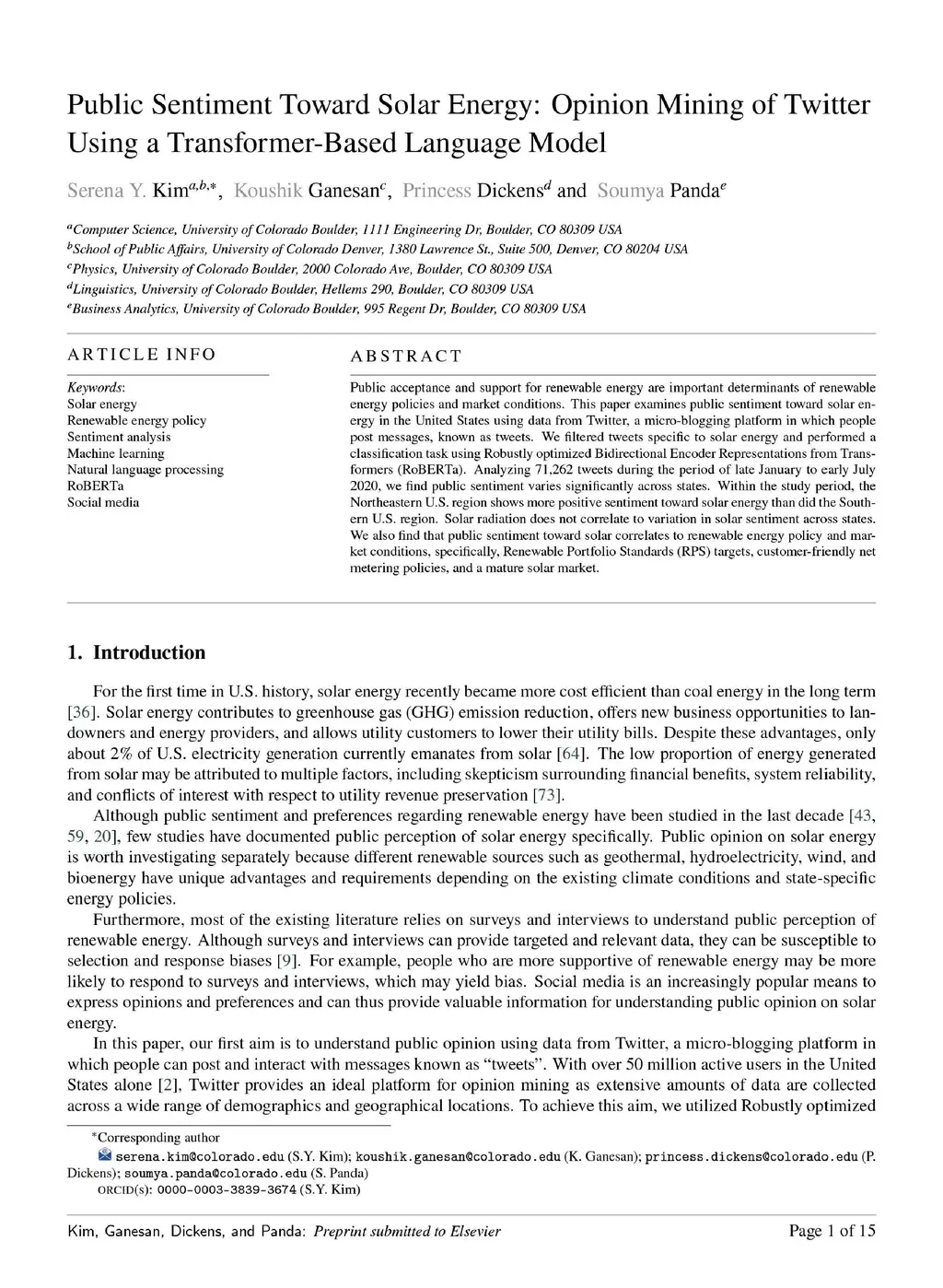 Public Sentiment Toward Solar Energy: Opinion Mining of Twitter Using a