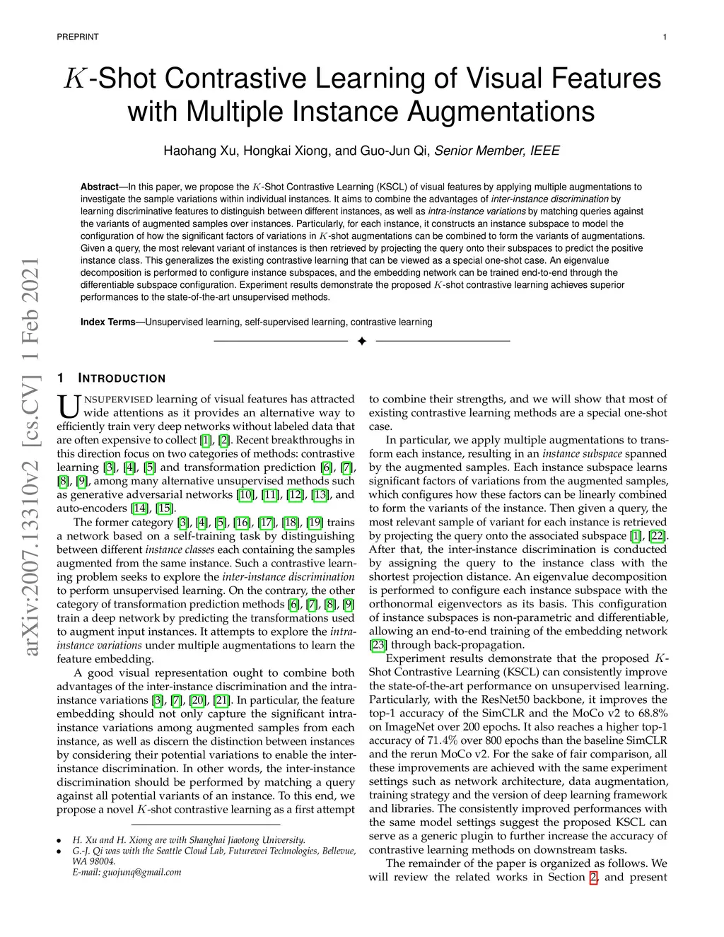 K-Shot Contrastive Learning of Visual Features with Multiple Instance