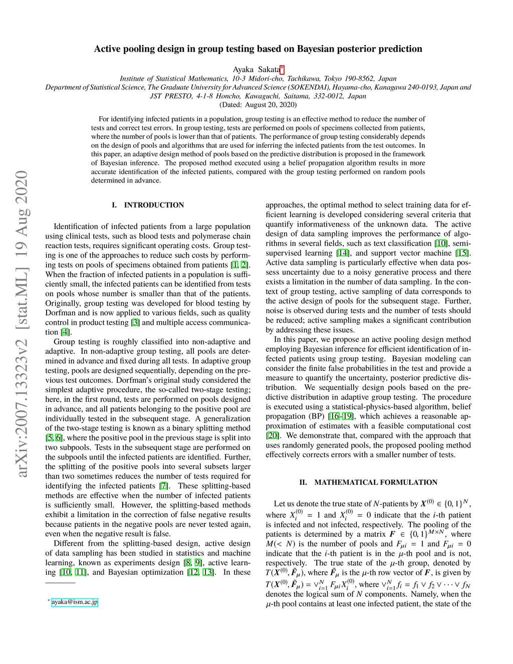 In identifying infected patients in a population, group testing is an effective method to reduce the number of tests and correct the test errors. In the group testing procedure, tests are performed on pools of specimens collected from patients, where the number of pools is lower than that of patients. The performance of group testing heavily depends on the design of pools and algorithms that are used in inferring the infected patients from the test outcomes. In this paper, an adaptive design method of pools based on the predictive distribution is proposed in the framework of Bayesian inference. The proposed method executed using the belief propagation algorithm results in more accurate identification of the infected patients, as compared to the group testing performed on random pools determined in advance.