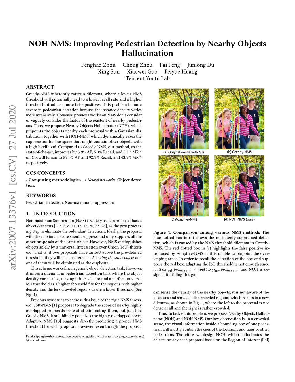 NOH-NMS: Improving Pedestrian Detection by Nearby Objects Hallucination