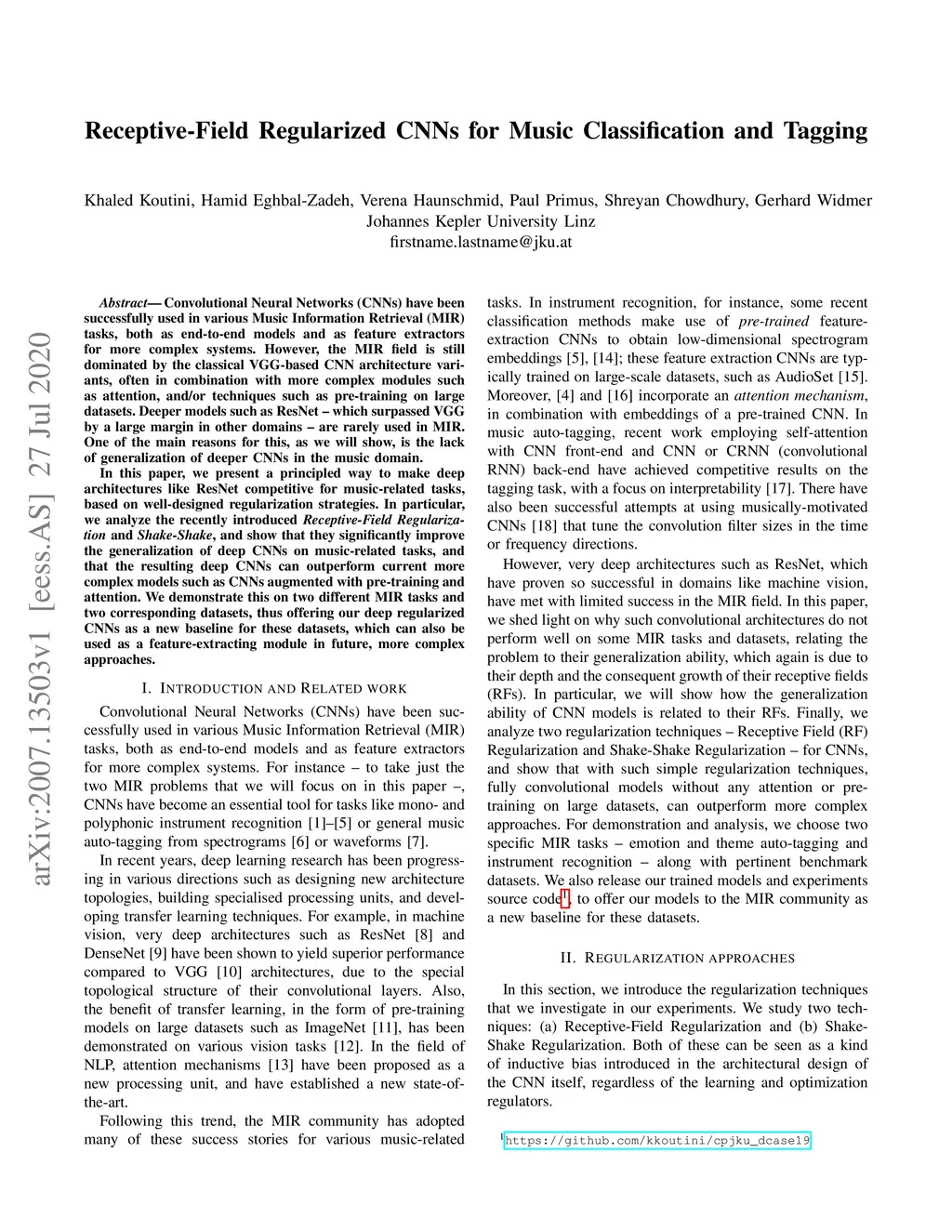Receptive-Field Regularized CNNs for Music Classification and Tagging