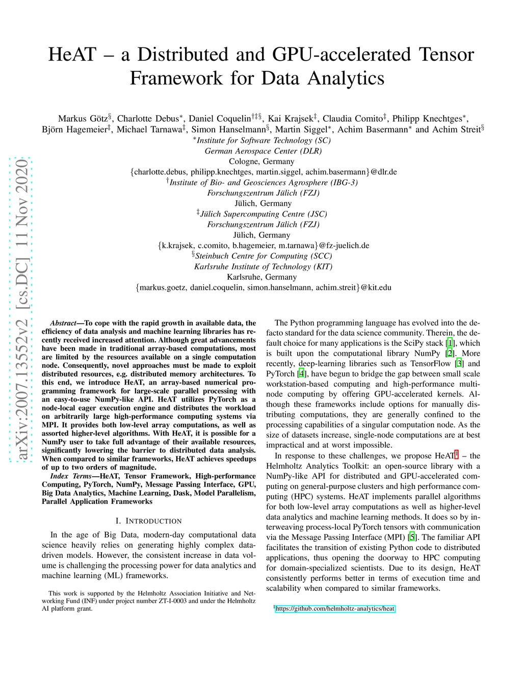 HeAT -- a Distributed and GPU-accelerated Tensor Framework for Data