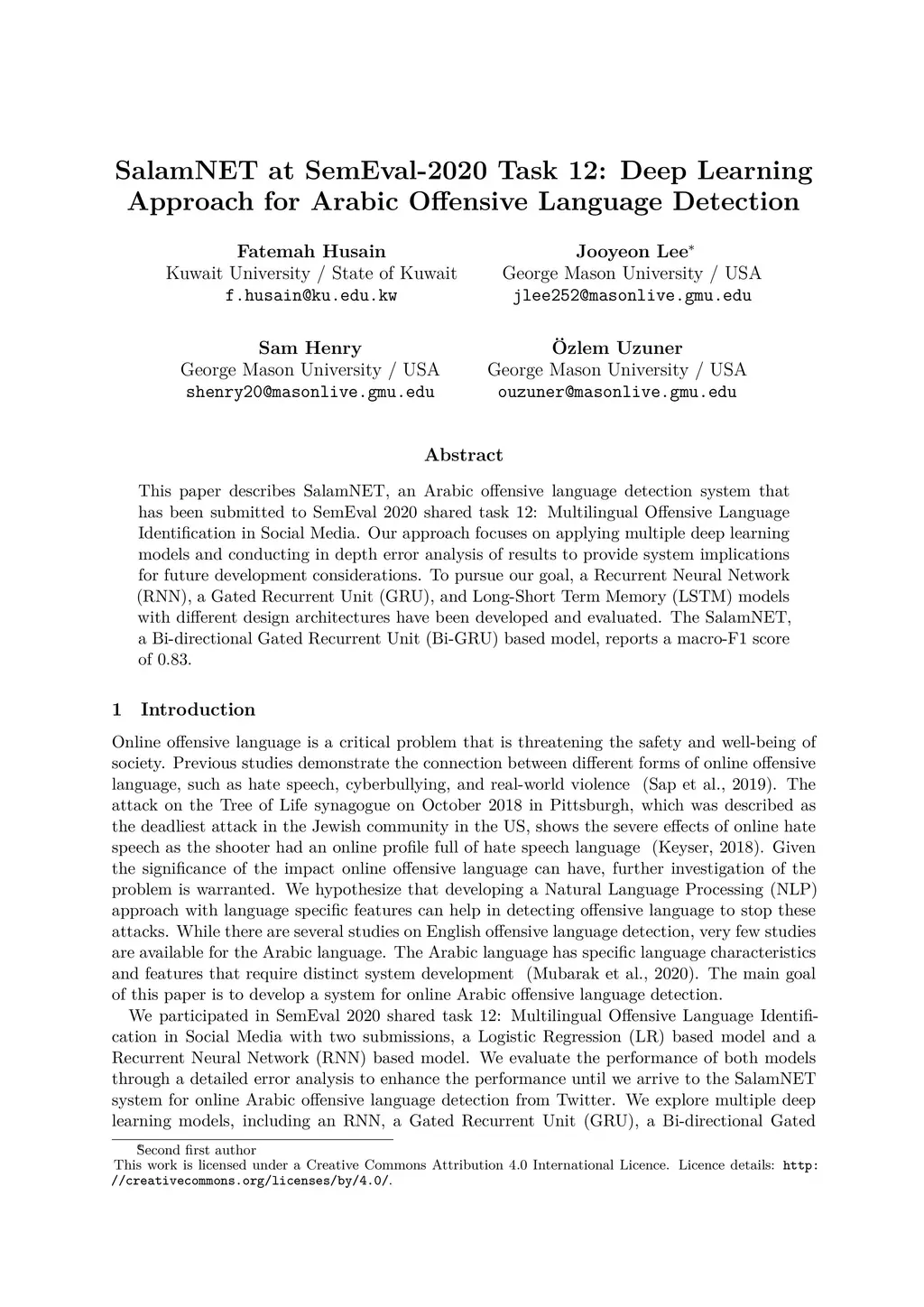 SalamNET at SemEval-2020 Task12: Deep Learning Approach for Arabic