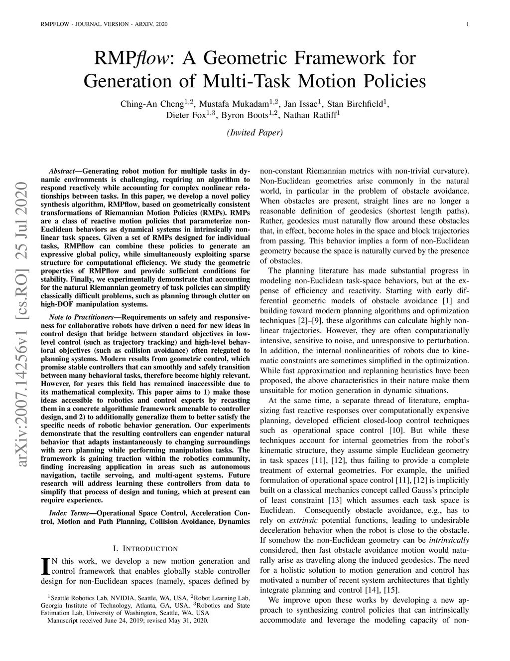 RMPflow: A Geometric Framework for Generation of Multi-Task Motion