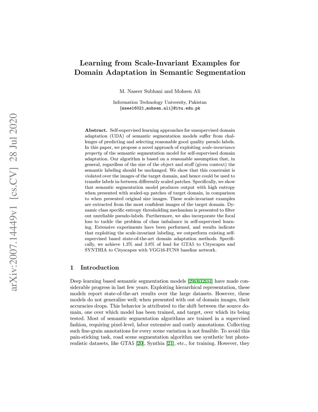 Learning from Scale-Invariant Examples for Domain Adaptation in Semantic