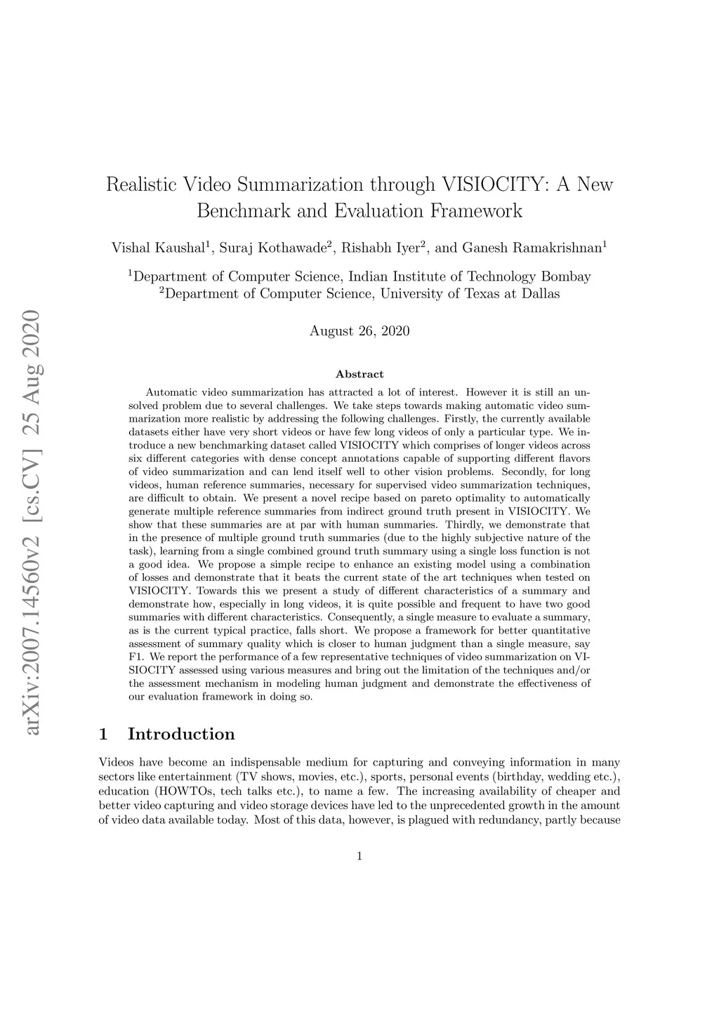 Realistic Video Summarization through VISIOCITY: A New Benchmark and
