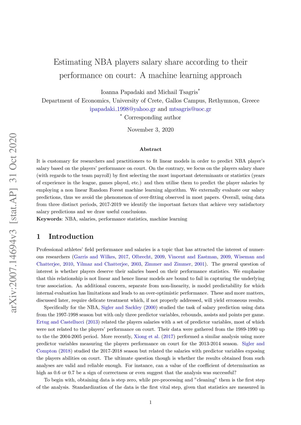 It is customary for researchers and practitioners to fit linear models in order to predict NBA player's salary based on the players' performance on court. On the contrary, we focus on the players salary share (with regards to the team payroll) by first selecting the most important determinants or statistics (years of experience in the league, games played, etc.) and then utilise them to predict the player salaries by employing a non linear Random Forest machine learning algorithm. We externally evaluate our salary predictions, thus we avoid the phenomenon of over-fitting observed in most papers. Overall, using data from three distinct periods, 2017-2019 we identify the important factors that achieve very satisfactory salary predictions and we draw useful conclusions.