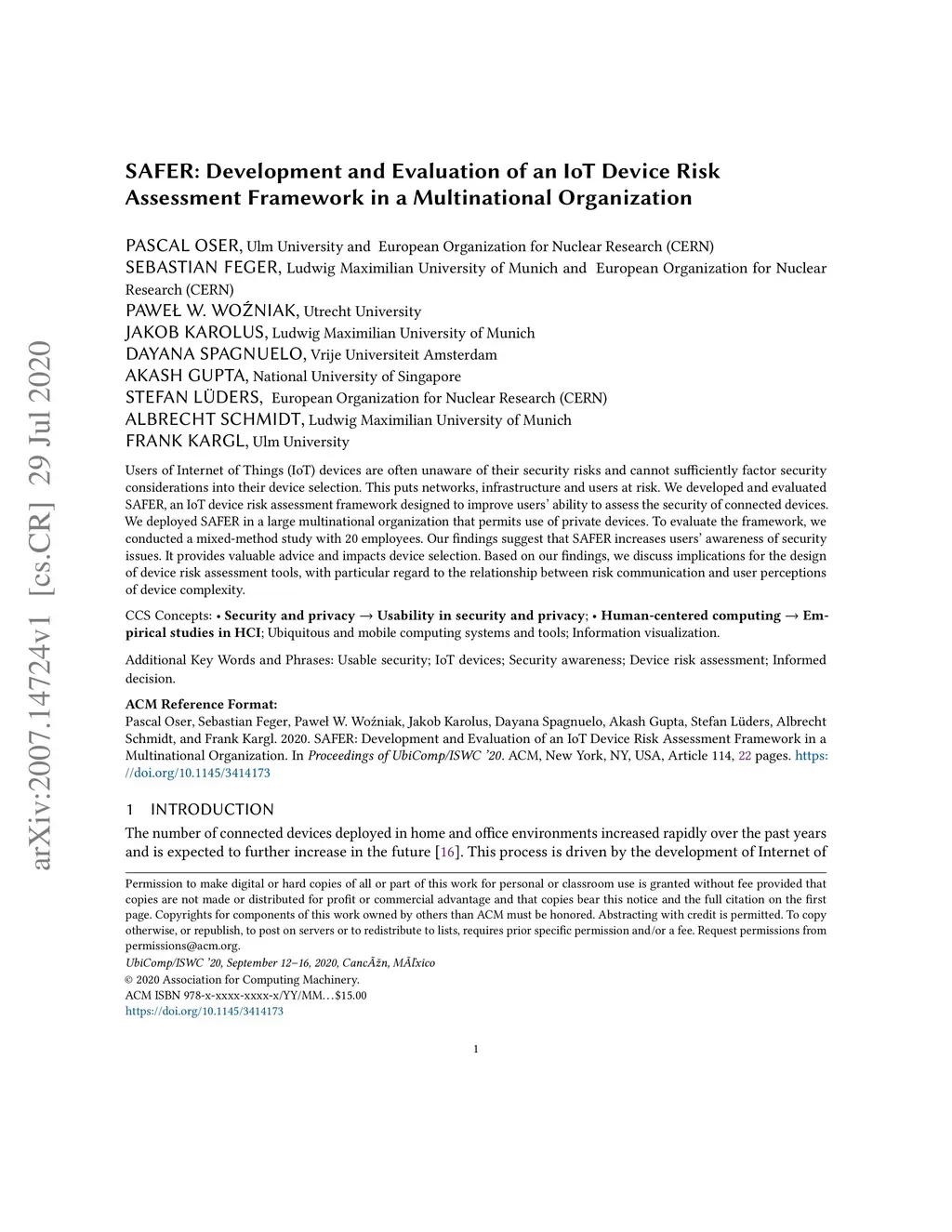 SAFER: Development and Evaluation of an IoT Device Risk Assessment