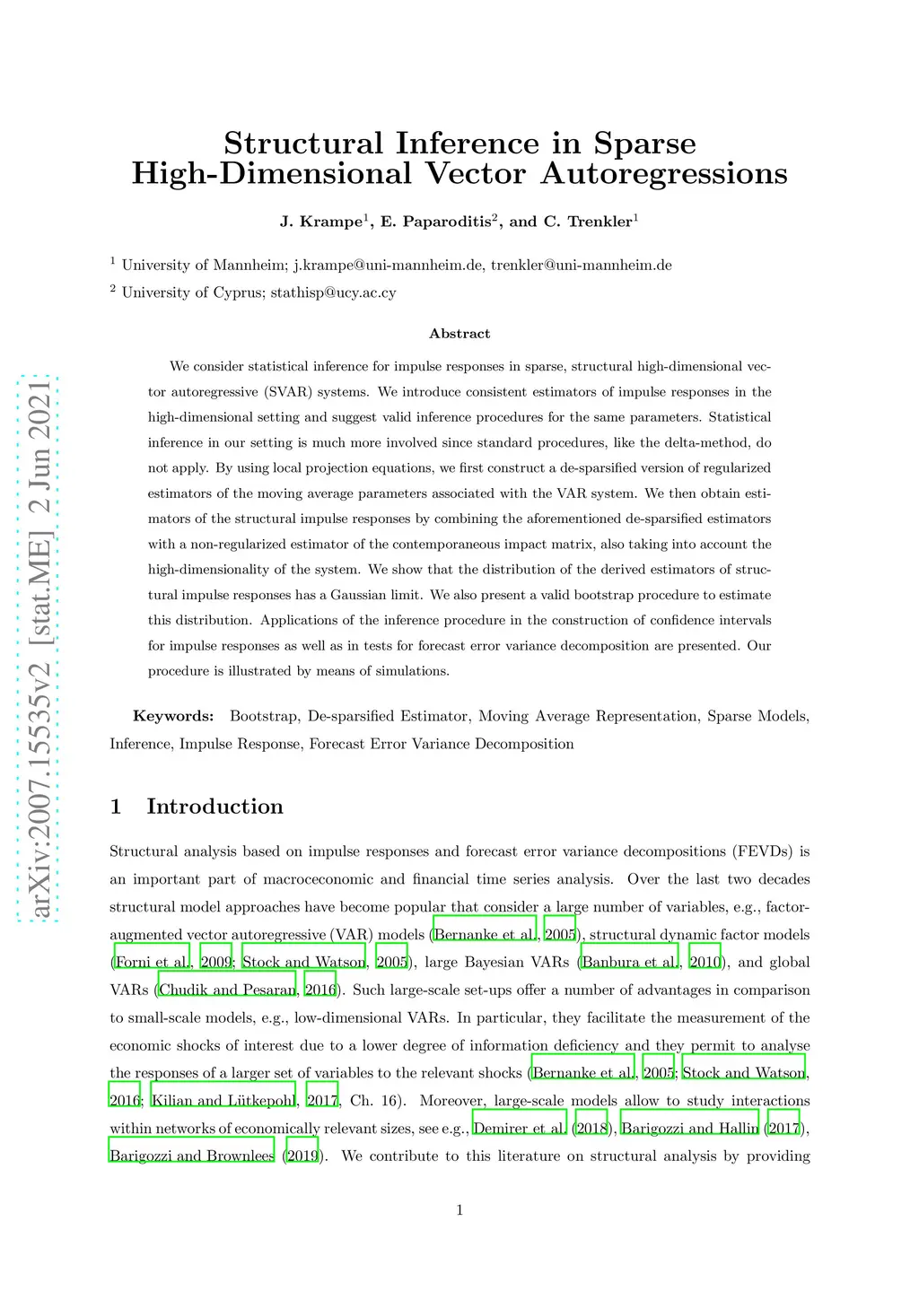 Structural Inference in Sparse High-Dimensional Vector Autoregressions