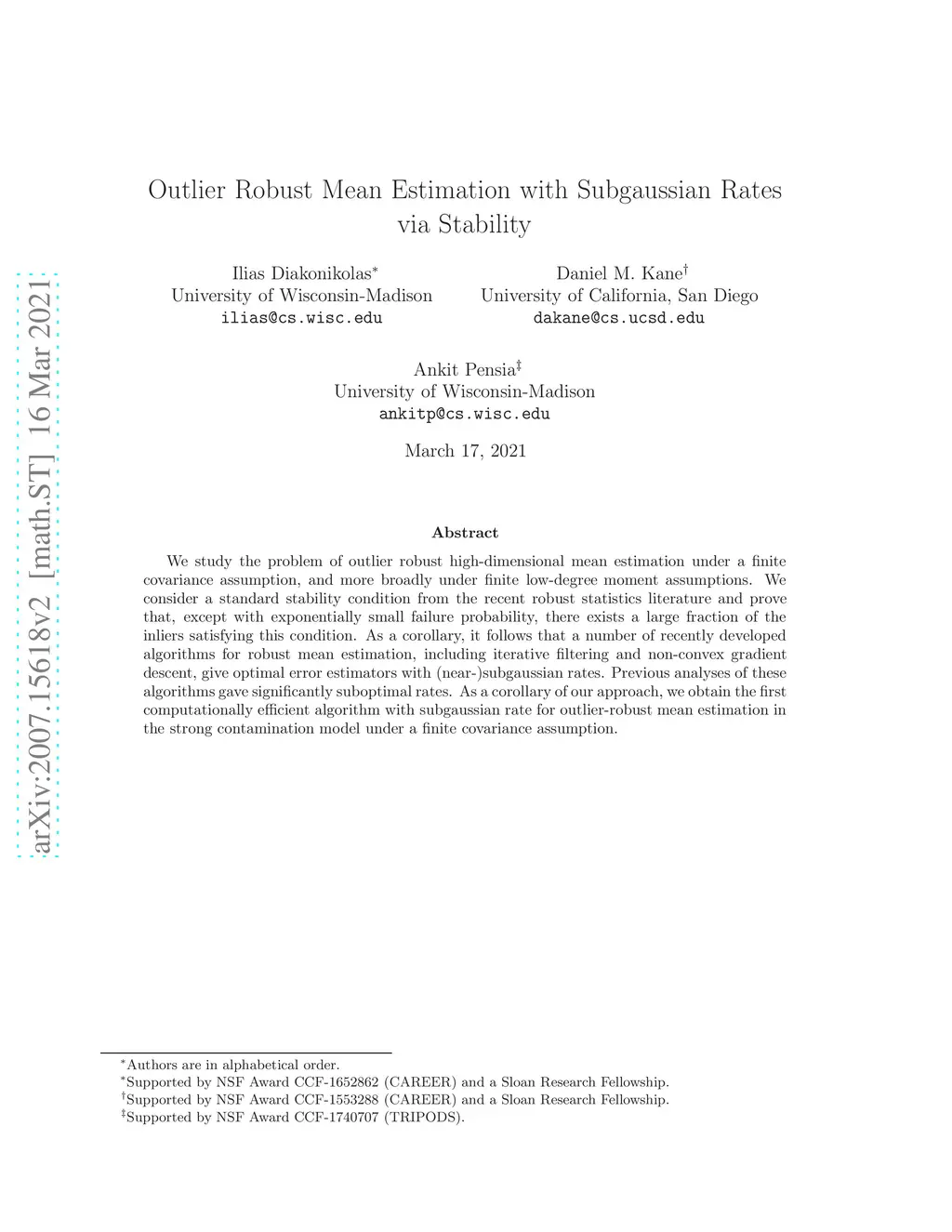 We study the problem of outlier robust high-dimensional mean estimation under a finite covariance assumption, and more broadly under finite low-degree moment assumptions. We consider a standard stability condition from the recent robust statistics literature and prove that, except with exponentially small failure probability, there exists a large fraction of the inliers satisfying this condition. As a corollary, it follows that a number of recently developed algorithms for robust mean estimation, including iterative filtering and non-convex gradient descent, give optimal error estimators with (near-)subgaussian rates. Previous analyses of these algorithms gave significantly suboptimal rates. As a corollary of our approach, we obtain the first computationally efficient algorithm with subgaussian rate for outlier-robust mean estimation in the strong contamination model under a finite covariance assumption.