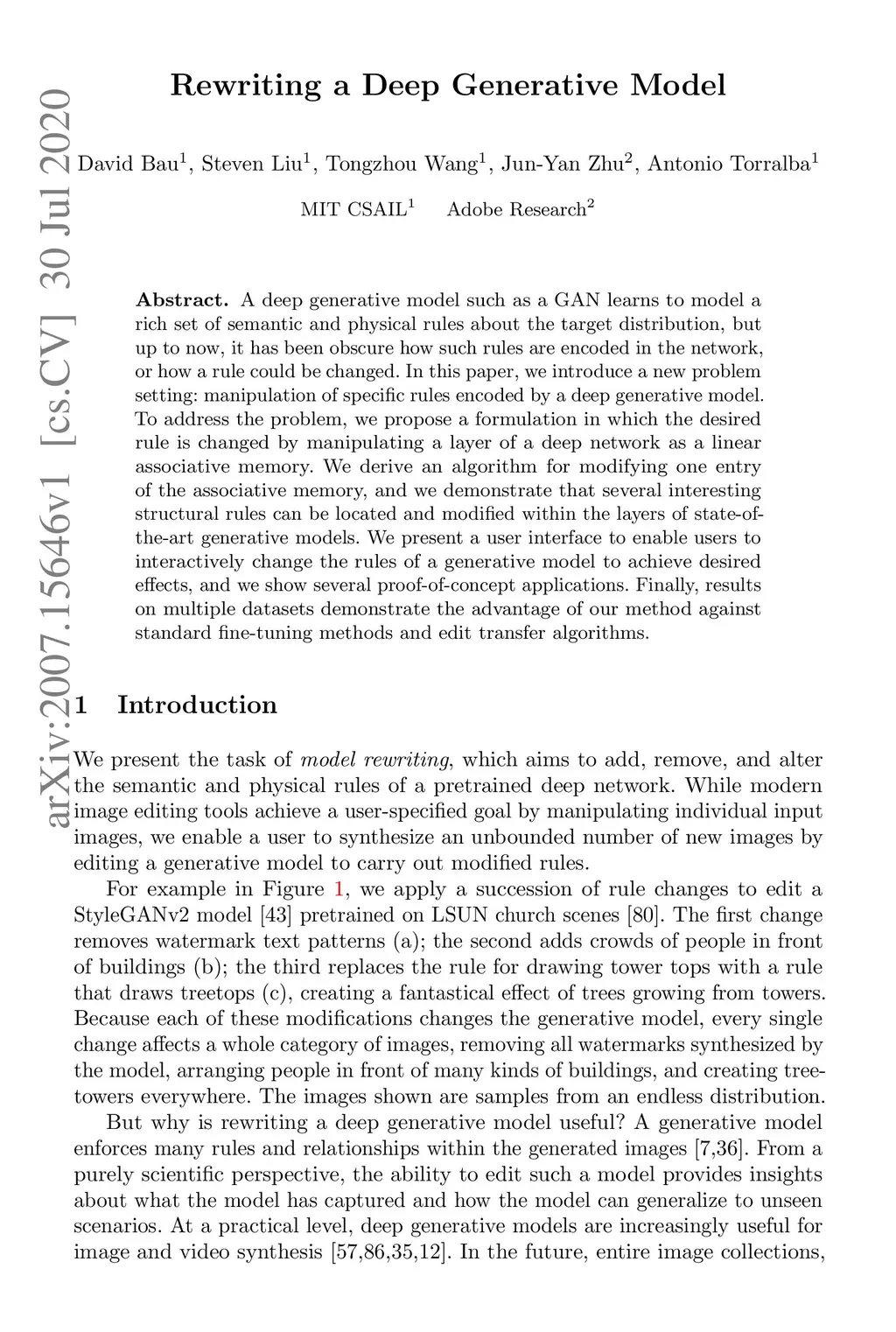 Rewriting a Deep Generative Model