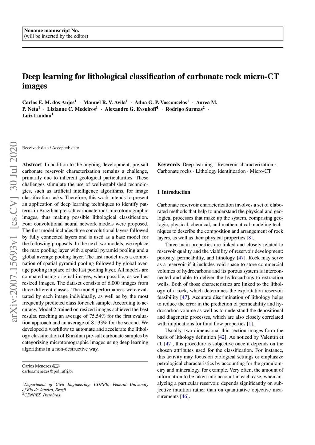 Deep learning for lithological classification of carbonate rock micro-CT