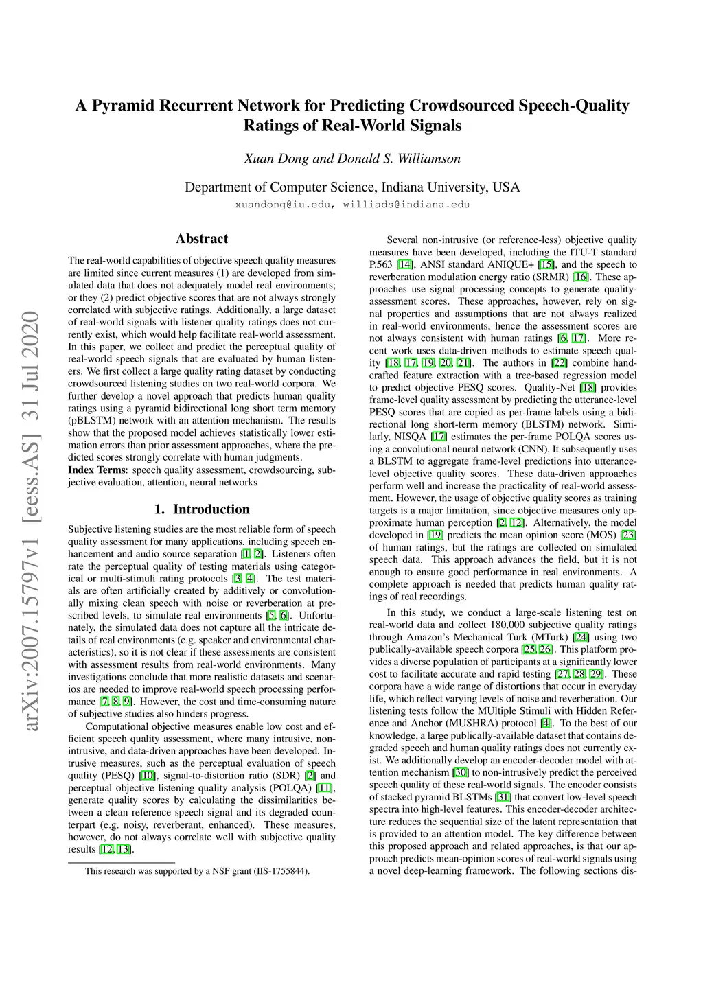 A Pyramid Recurrent Network for Predicting Crowdsourced Speech-Quality