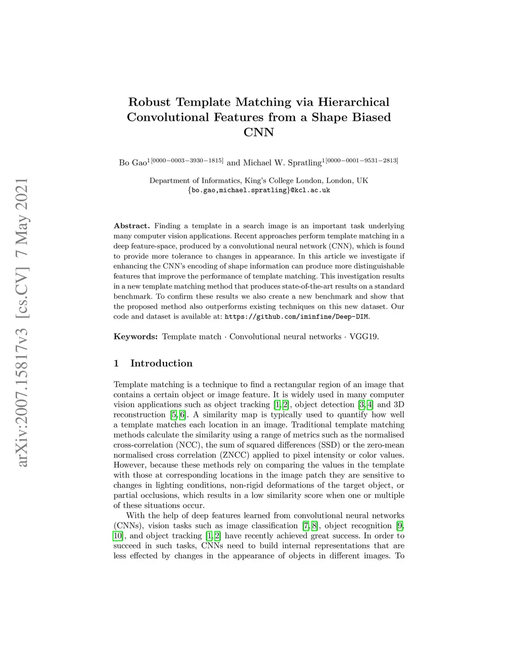 Finding a template in a search image is an important task underlying many computer vision applications. Recent approaches perform template matching in a deep feature-space, produced by a convolutional neural network (CNN), which is found to provide more tolerance to changes in appearance. In this article we investigate if enhancing the CNN's encoding of shape information can produce more distinguishable features that improve the performance of template matching. This investigation results in a new template matching method that produces state-of-the-art results on a standard benchmark. To confirm these results we also create a new benchmark and show that the proposed method also outperforms existing techniques on this new dataset. Our code and dataset is available at: https://github.com/iminfine/Deep-DIM.