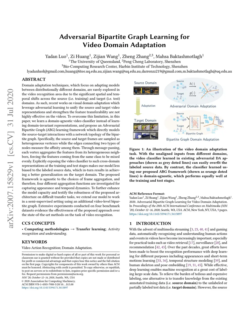 Adversarial Bipartite Graph Learning for Video Domain Adaptation
