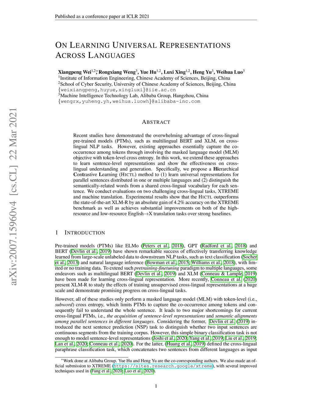 On Learning Universal Representations Across Languages