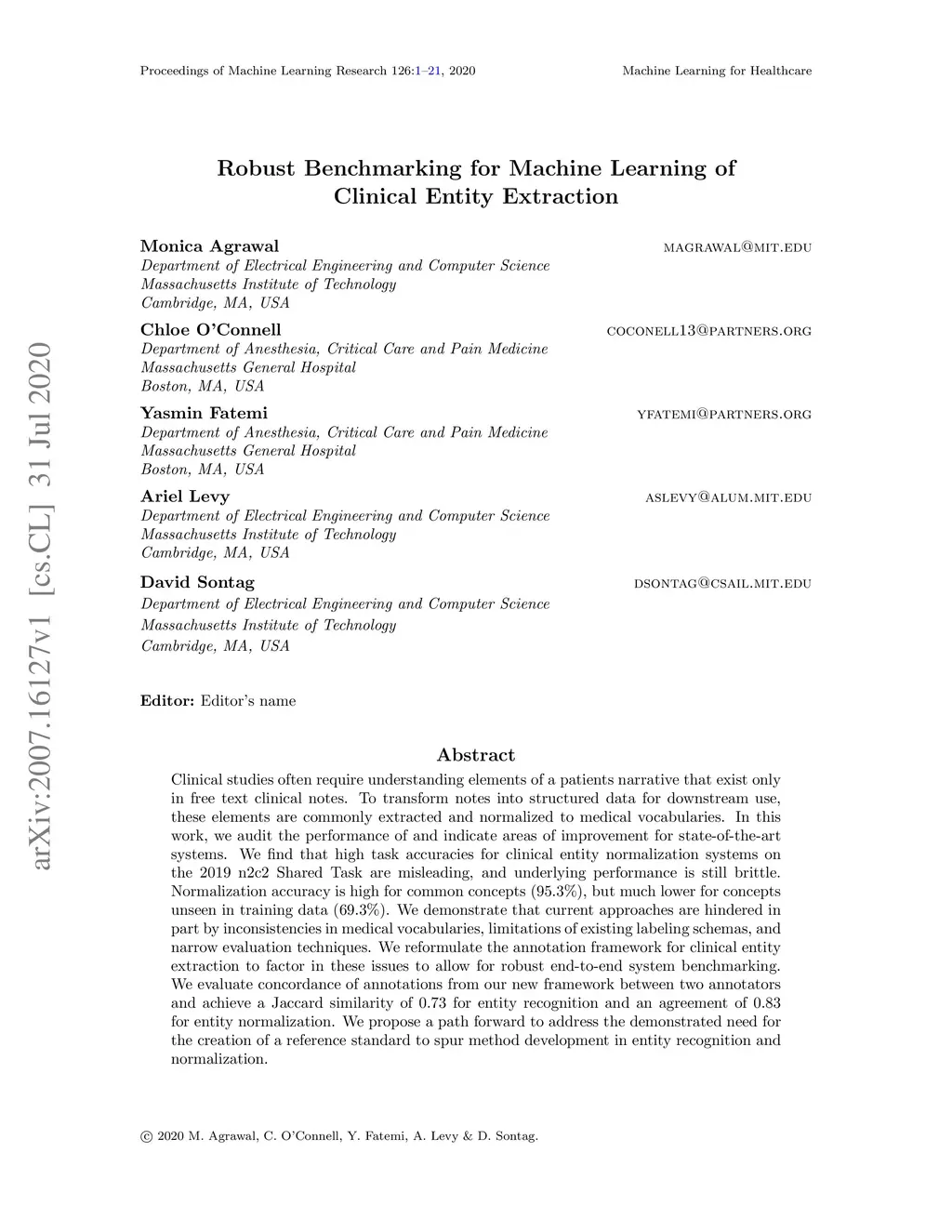 Robust Benchmarking for Machine Learning of Clinical Entity Extraction