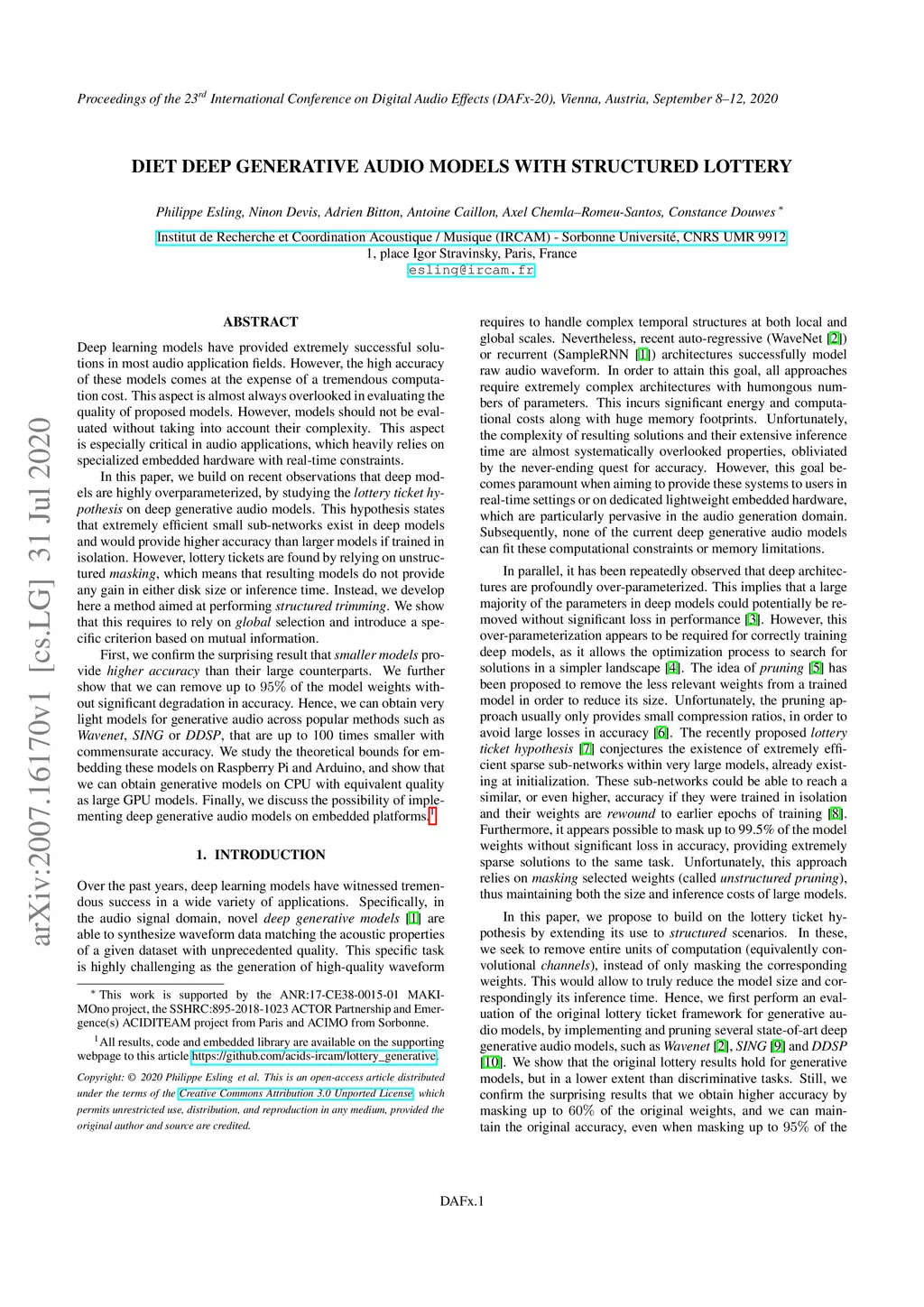 Diet deep generative audio models with structured lottery