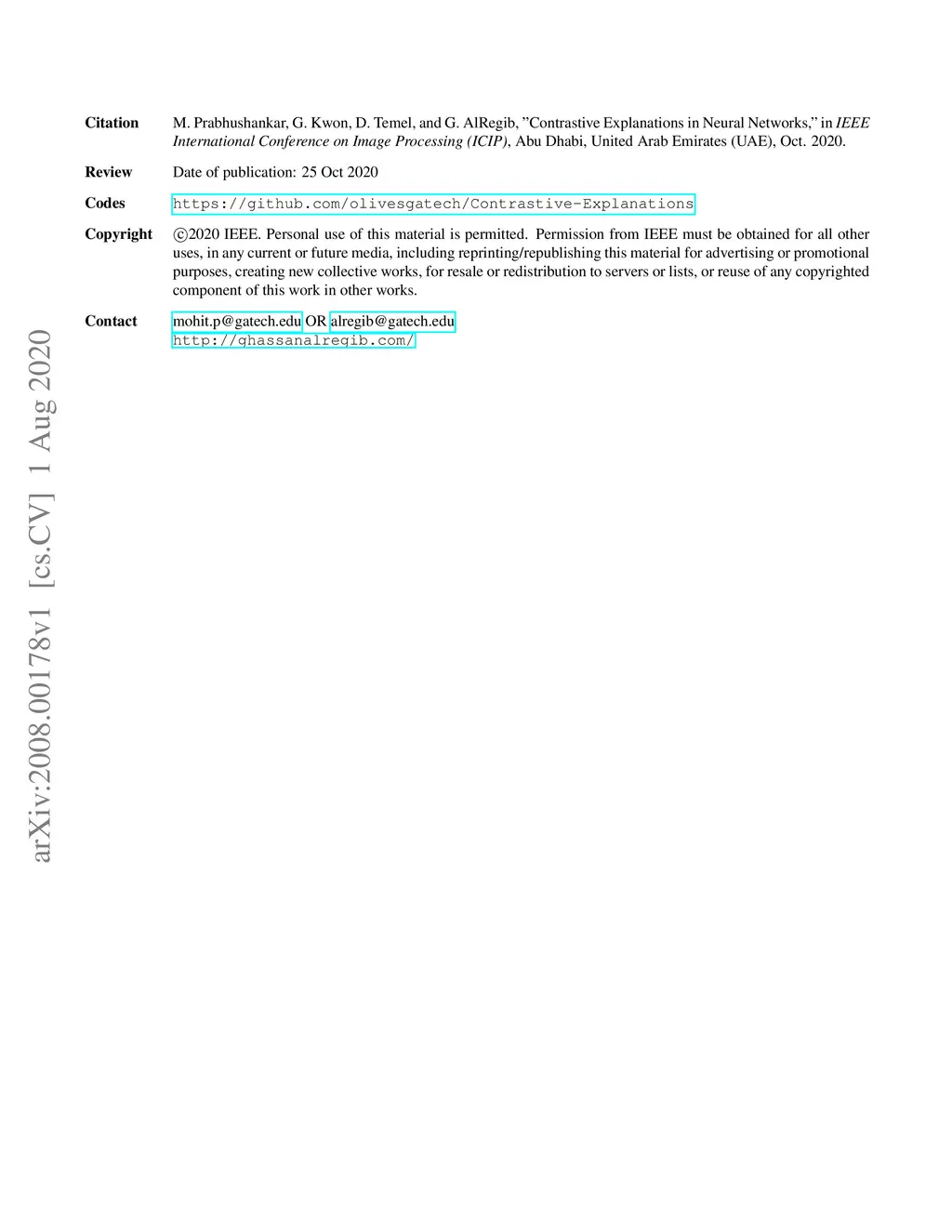 Contrastive Explanations in Neural Networks