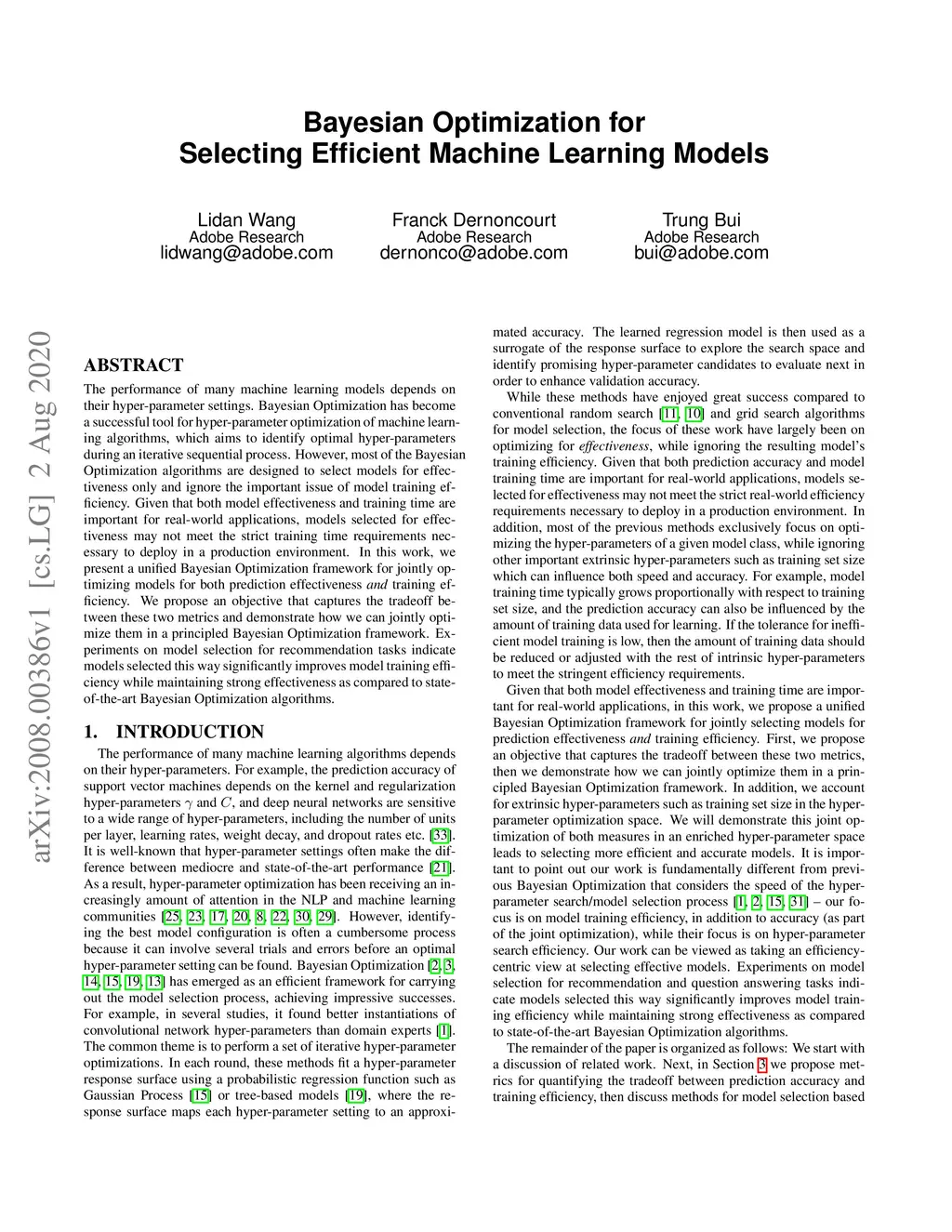 Bayesian Optimization for Selecting Efficient Machine Learning Models