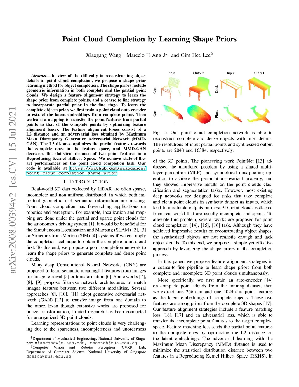 In view of the difficulty in reconstructing object details in point cloud completion, we propose a shape prior learning method for object completion. The shape priors include geometric information in both complete and the partial point clouds. We design a feature alignment strategy to learn the shape prior from complete points, and a coarse to fine strategy to incorporate partial prior in the fine stage. To learn the complete objects prior, we first train a point cloud auto-encoder to extract the latent embeddings from complete points. Then we learn a mapping to transfer the point features from partial points to that of the complete points by optimizing feature alignment losses. The feature alignment losses consist of a L2 distance and an adversarial loss obtained by Maximum Mean Discrepancy Generative Adversarial Network (MMD-GAN). The L2 distance optimizes the partial features towards the complete ones in the feature space, and MMD-GAN decreases the statistical distance of two point features in a Reproducing Kernel Hilbert Space. We achieve state-of-the-art performances on the point cloud completion task. Our code is available at https://github.com/xiaogangw/point-cloud-completion-shape-prior.