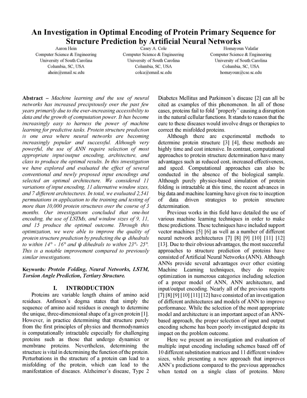 Machine learning and the use of neural networks has increased precipitously over the past few years primarily due to the ever-increasing accessibility to data and the growth of computation power. It has become increasingly easy to harness the power of machine learning for predictive tasks. Protein structure prediction is one area where neural networks are becoming increasingly popular and successful. Although very powerful, the use of ANN require selection of most appropriate input/output encoding, architecture, and class to produce the optimal results. In this investigation we have explored and evaluated the effect of several conventional and newly proposed input encodings and selected an optimal architecture. We considered 11 variations of input encoding, 11 alternative window sizes, and 7 different architectures. In total, we evaluated 2,541 permutations in application to the training and testing of more than 10,000 protein structures over the course of 3 months. Our investigations concluded that one-hot encoding, the use of LSTMs, and window sizes of 9, 11, and 15 produce the optimal outcome. Through this optimization, we were able to improve the quality of protein structure prediction by predicting the {\phi} dihedrals to within 14{\deg} - 16{\deg} and {\psi} dihedrals to within 23{\deg}- 25{\deg}. This is a notable improvement compared to previously similar investigations.