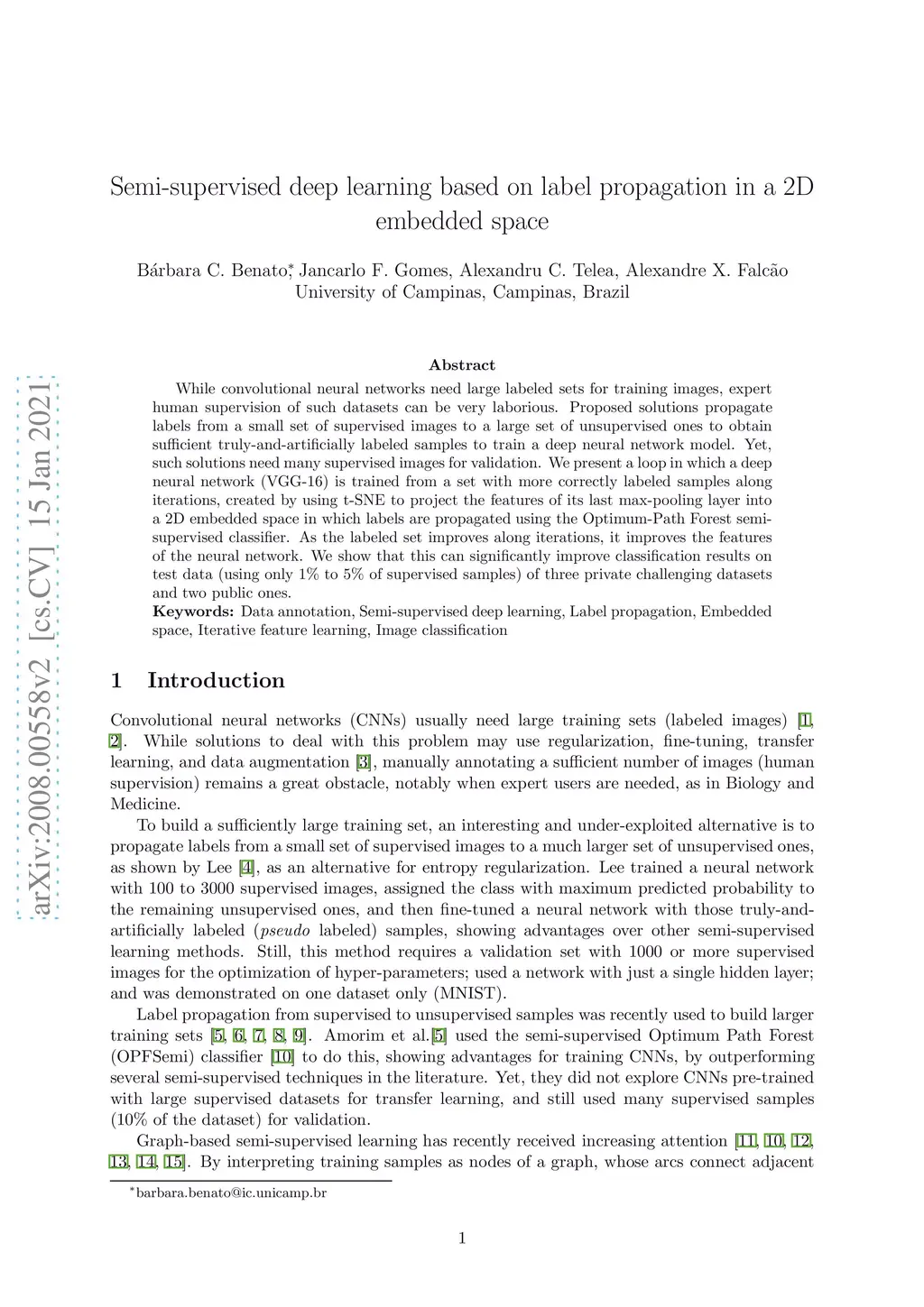 Semi-supervised deep learning based on label propagation in a 2D