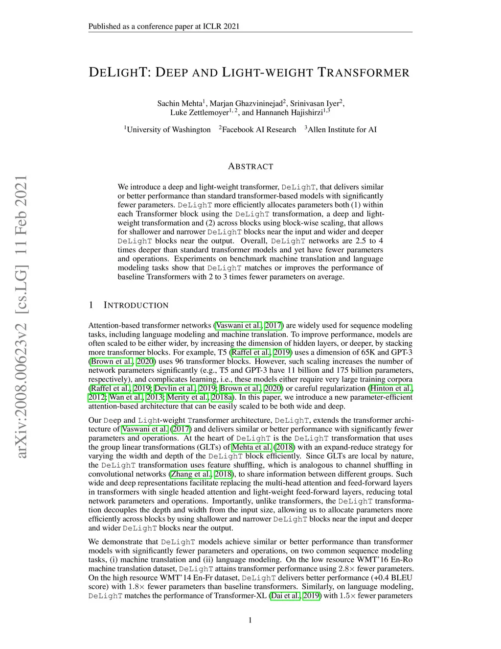 DeLighT: Deep and Light-weight Transformer