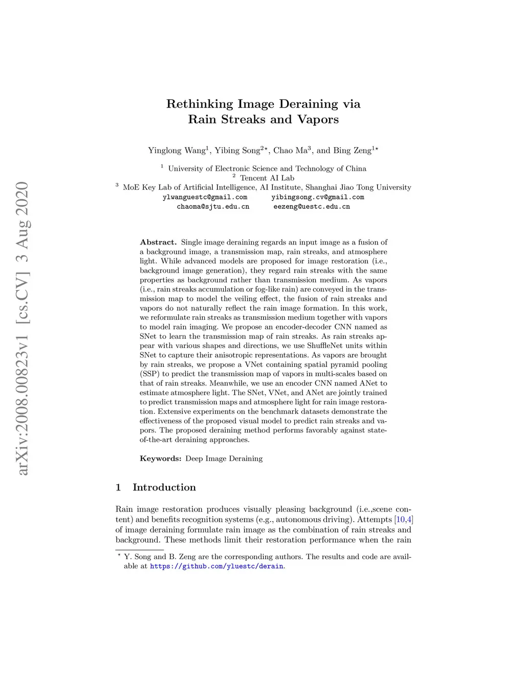 Rethinking Image Deraining via Rain Streaks and Vapors