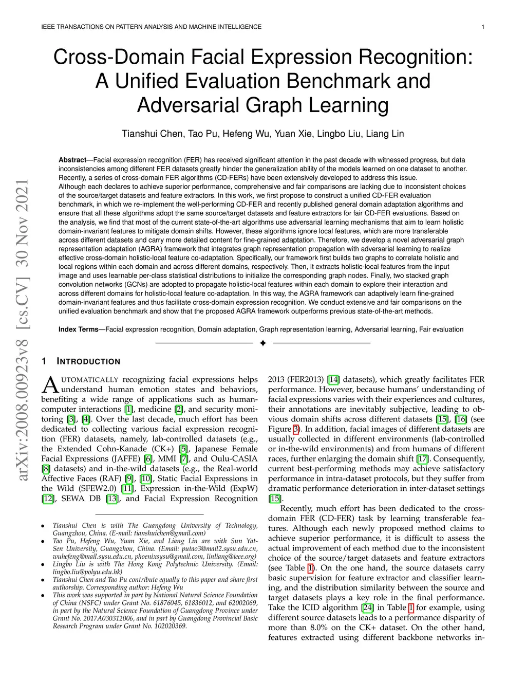 To address the problem of data inconsistencies among different facial expression recognition (FER) datasets, many cross-domain FER methods (CD-FERs) have been extensively devised in recent years. Although each declares to achieve superior performance, fair comparisons are lacking due to the inconsistent choices of the source/target datasets and feature extractors. In this work, we first analyze the performance effect caused by these inconsistent choices, and then re-implement some well-performing CD-FER and recently published domain adaptation algorithms. We ensure that all these algorithms adopt the same source datasets and feature extractors for fair CD-FER evaluations. We find that most of the current leading algorithms use adversarial learning to learn holistic domain-invariant features to mitigate domain shifts. However, these algorithms ignore local features, which are more transferable across different datasets and carry more detailed content for fine-grained adaptation. To address these issues, we integrate graph representation propagation with adversarial learning for cross-domain holistic-local feature co-adaptation by developing a novel adversarial graph representation adaptation (AGRA) framework. Specifically, it first builds two graphs to correlate holistic and local regions within each domain and across different domains, respectively. Then, it extracts holistic-local features from the input image and uses learnable per-class statistical distributions to initialize the corresponding graph nodes. Finally, two stacked graph convolution networks (GCNs) are adopted to propagate holistic-local features within each domain to explore their interaction and across different domains for holistic-local feature co-adaptation. We conduct extensive and fair evaluations on several popular benchmarks and show that the proposed AGRA framework outperforms previous state-of-the-art methods.