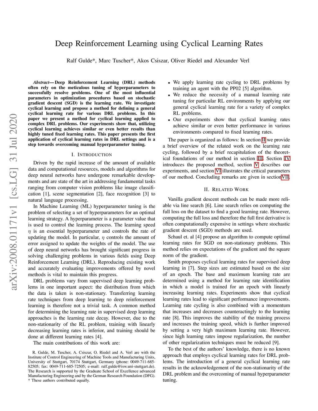 Deep Reinforcement Learning using Cyclical Learning Rates