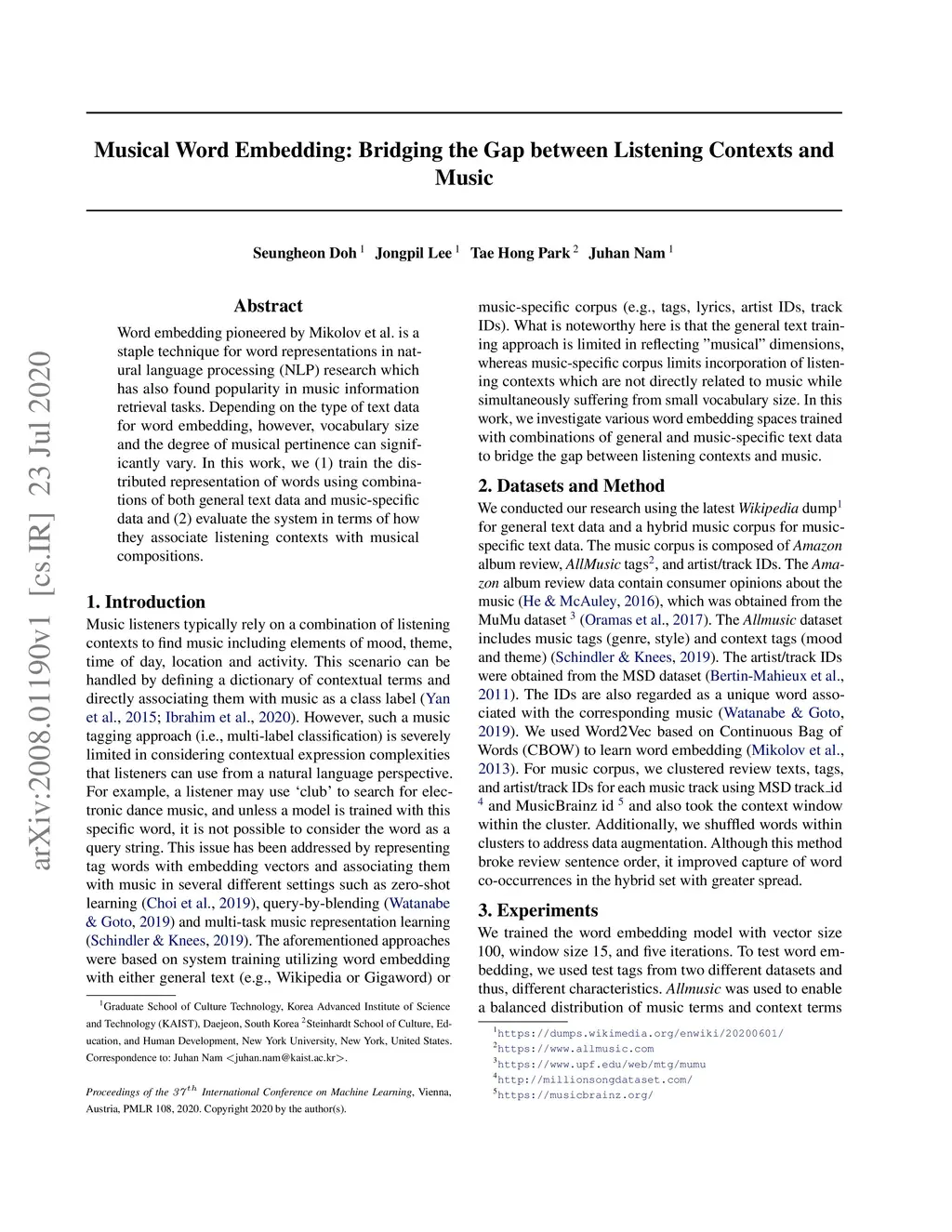 Musical Word Embedding: Bridging the Gap between Listening Contexts and