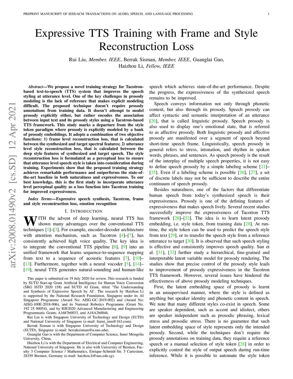 Expressive TTS Training with Frame and Style Reconstruction Loss