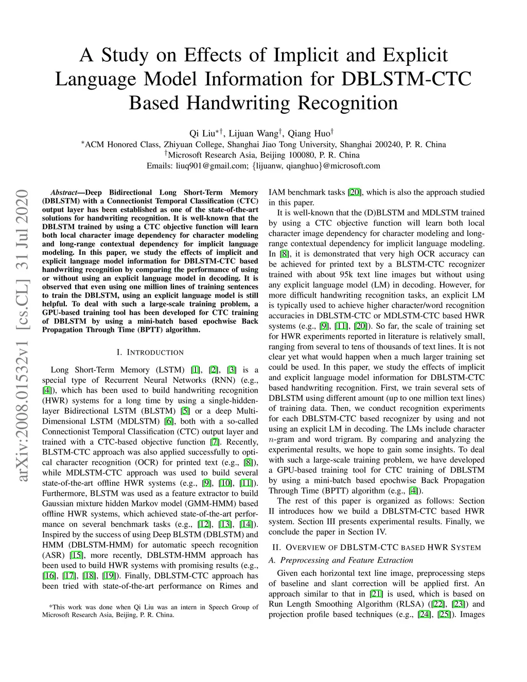 for DBLSTM-CTC Based Handwriting Recognition