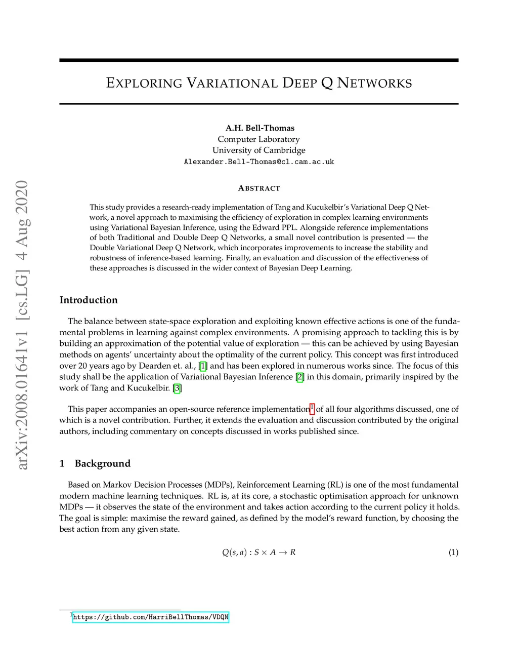 This study provides both analysis and a refined, research-ready implementation of Tang and Kucukelbir's Variational Deep Q Network, a novel approach to maximising the efficiency of exploration in complex learning environments using Variational Bayesian Inference. Alongside reference implementations of both Traditional and Double Deep Q Networks, a small novel contribution is presented - the Double Variational Deep Q Network, which incorporates improvements to increase the stability and robustness of inference-based learning. Finally, an evaluation and discussion of the effectiveness of these approaches is discussed in the wider context of Bayesian Deep Learning.