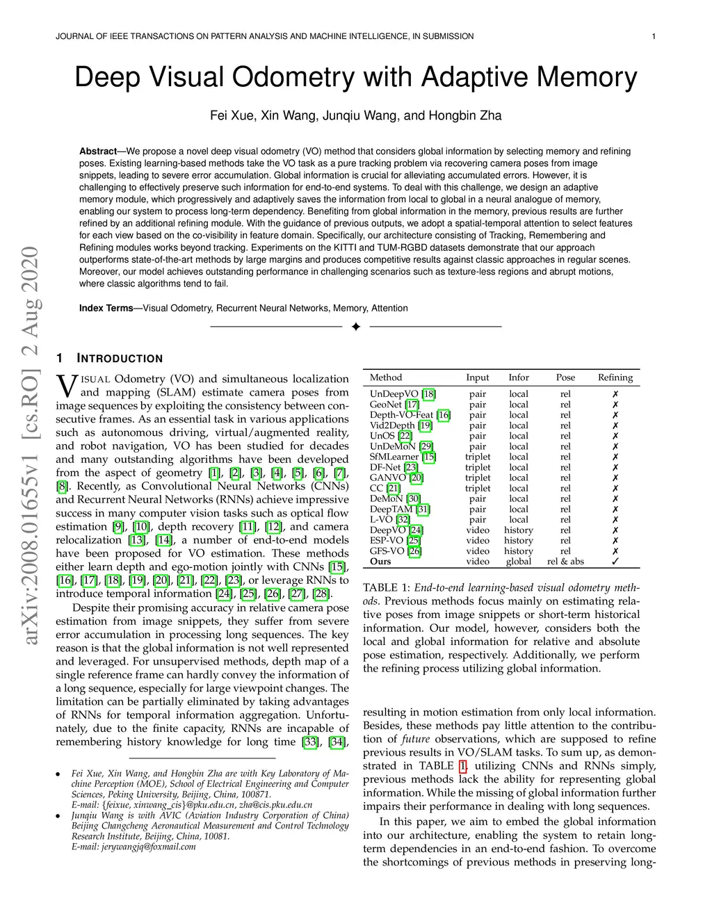 Deep Visual Odometry with Adaptive Memory
