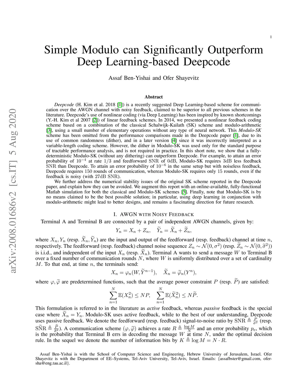 Deepcode (H.Kim et al.2018) is a recently suggested Deep Learning-based scheme for communication over the AWGN channel with noisy feedback, claimed to be superior to all previous schemes in the literature. Deepcode's use of nonlinear coding (via Deep Learning) has been inspired by known shortcomings (Y.-H. Kim et al 2007) of linear feedback schemes. In 2014, we presented a nonlinear feedback coding scheme based on a combination of the classical SK scheme and modulo-arithmetic, using a small number of elementary operations without any type of neural network. This Modulo-SK scheme has been omitted from the performance comparisons made in the Deepcode paper, due to its use of common randomness (dither), and in a later version since it was incorrectly interpreted as a variable-length coding scheme. However, the dither in Modulo-SK was used only for the standard purpose of tractable performance analysis, and is not required in practice. In this short note, we show that a fully-deterministic Modulo-SK (without dithering) can outperform Deepcode. For example, to attain an error probability of 10^(-4) at rate 1/3 Modulo-SK requires 3dB less feedback SNR than Deepcode. To attain an error probability of 10^(-6) with noiseless feedback, Deepcode requires 150 rounds of communication, whereas Modulo-SK requires only 15 rounds, even if the feedback is noisy (with 27dB SNR). We further address the numerical stability issues of the original SK scheme reported in the Deepcode paper, and explain how they can be avoided. We augment this report with an online-available, fully-functional Matlab simulation for both the classical and Modulo-SK schemes. Finally, note that Modulo-SK is by no means claimed to be the best possible solution; in particular, using deep learning in conjunction with modulo-arithmetic might lead to better designs, and remains a fascinating direction for future research.