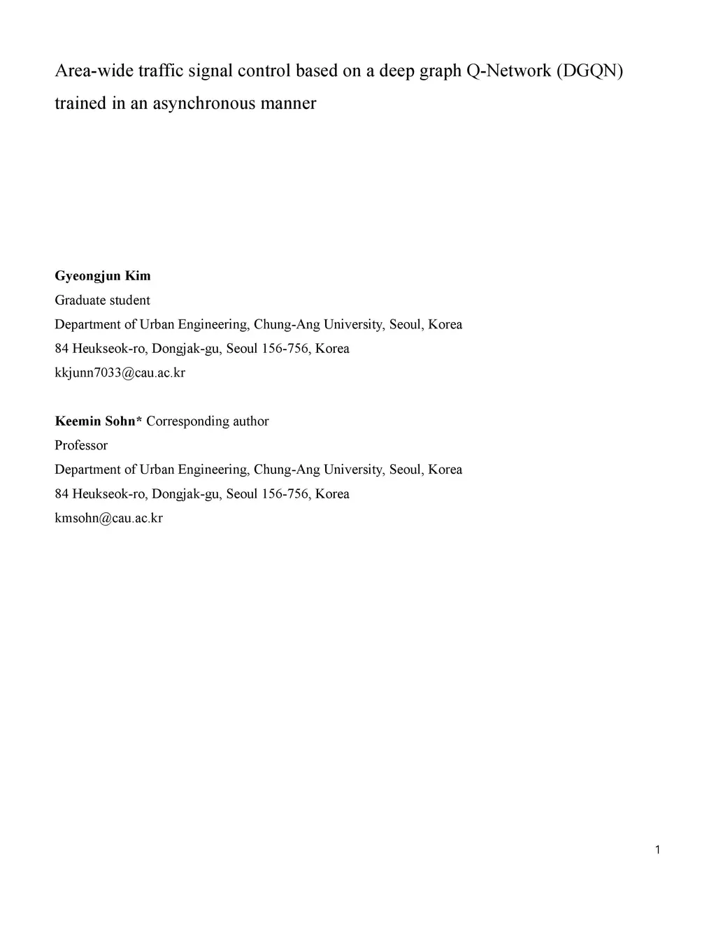 Area-wide traffic signal control based on a deep graph Q-Network (DGQN)