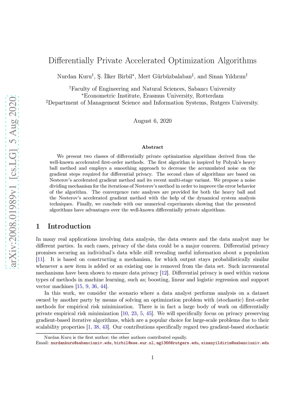 We present two classes of differentially private optimization algorithms derived from the well-known accelerated first-order methods. The first algorithm is inspired by Polyak's heavy ball method and employs a smoothing approach to decrease the accumulated noise on the gradient steps required for differential privacy. The second class of algorithms are based on Nesterov's accelerated gradient method and its recent multi-stage variant. We propose a noise dividing mechanism for the iterations of Nesterov's method in order to improve the error behavior of the algorithm. The convergence rate analyses are provided for both the heavy ball and the Nesterov's accelerated gradient method with the help of the dynamical system analysis techniques. Finally, we conclude with our numerical experiments showing that the presented algorithms have advantages over the well-known differentially private algorithms.